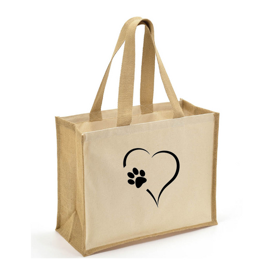 Heart & Paw Tote Bag - Jute Tote with Canvas Sides