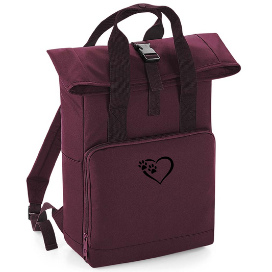 Heart and Paws Dog Walking Rucksack - Recycled Roll Top Backpack
