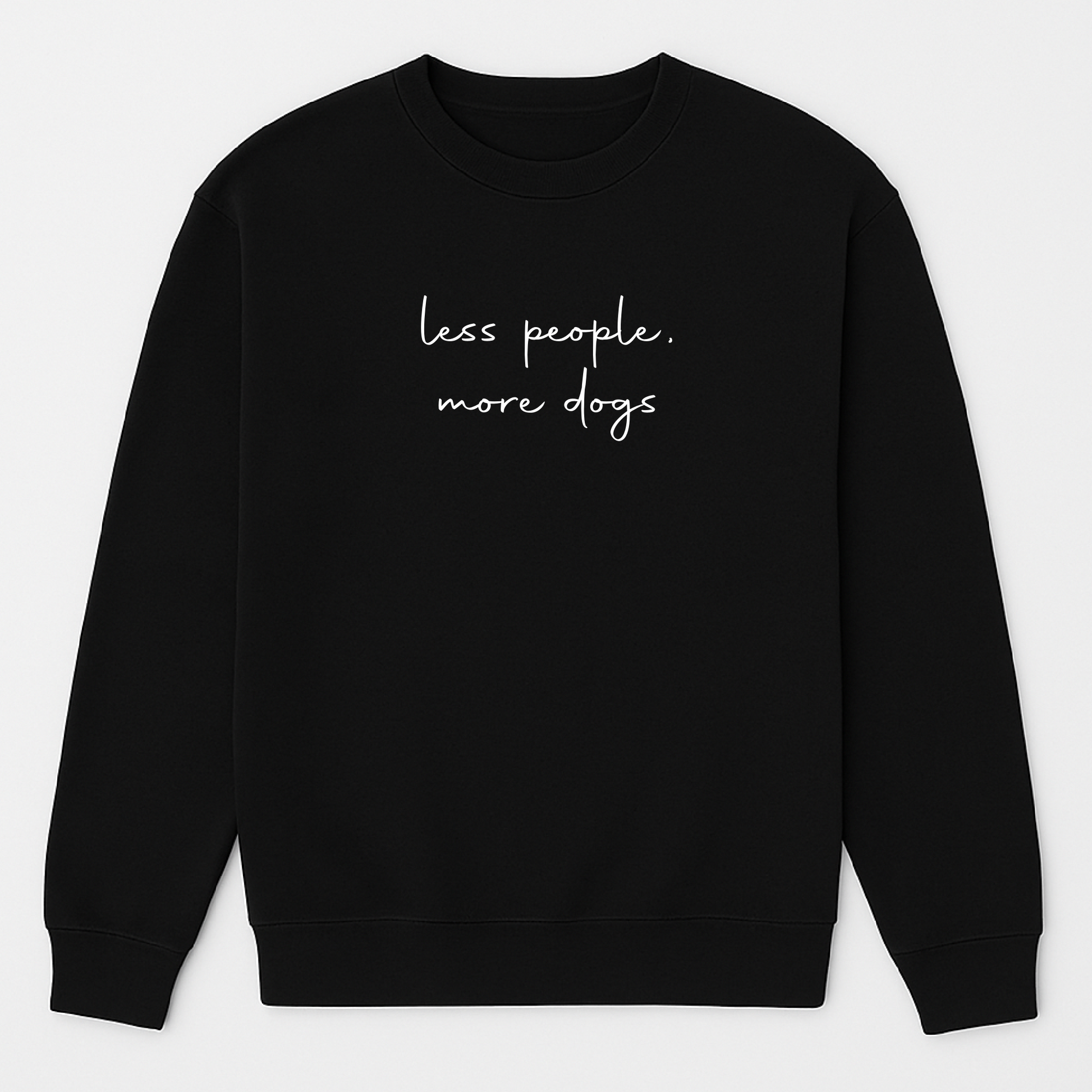 Our Less People, More Dogs sweatshirt is the go-to layer for dog walks, weekend errands, or simply relaxing at home with your four-legged best friend. Size up for a more oversized/baggy look.