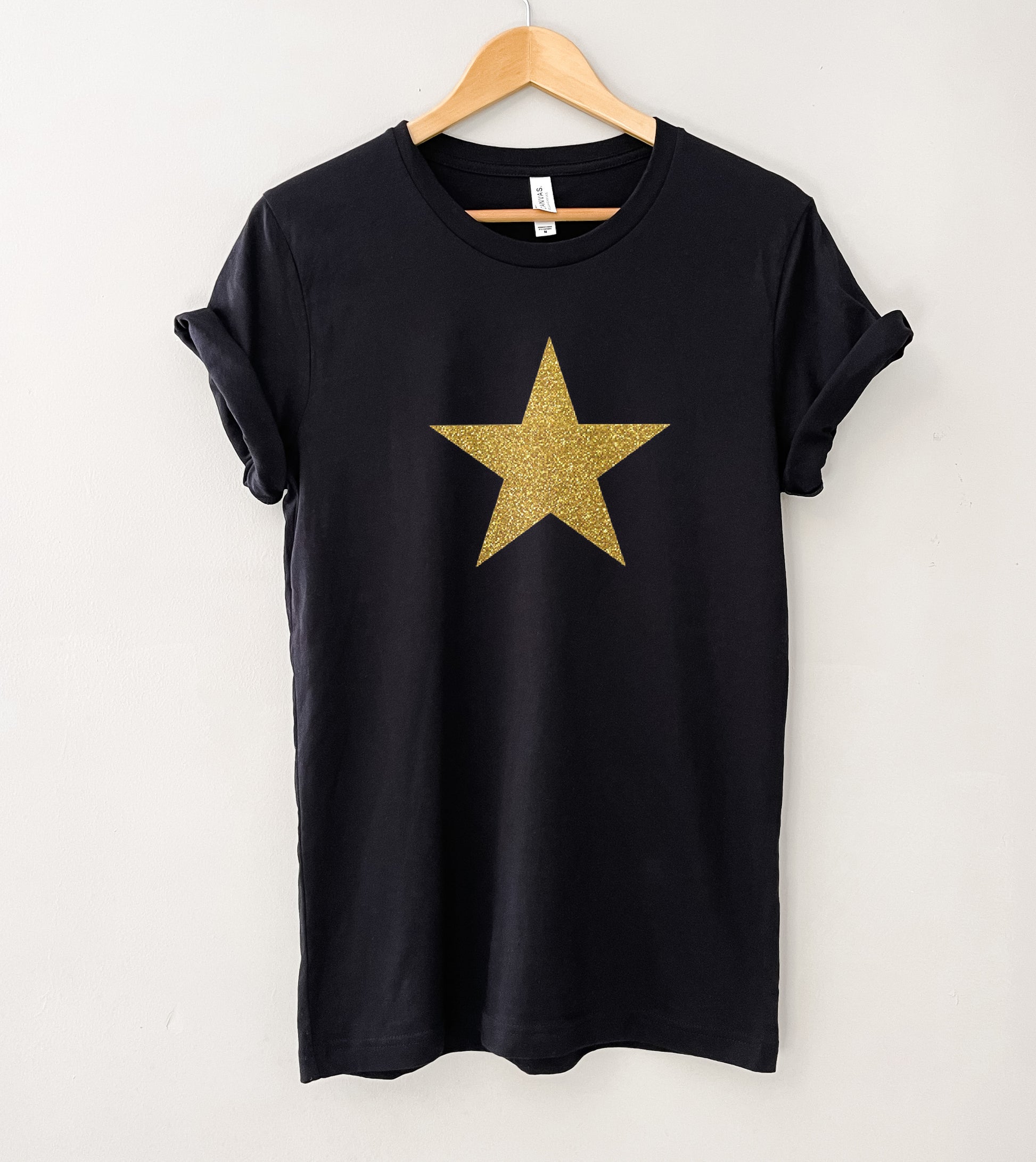 Star T-Shirt - Black with Gold Glitter Star - Size L - UK 16-18 (41")