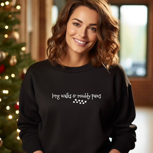 Long Walks and Muddy Paws T-Shirt - Black Size L - UK 16-18 (41")