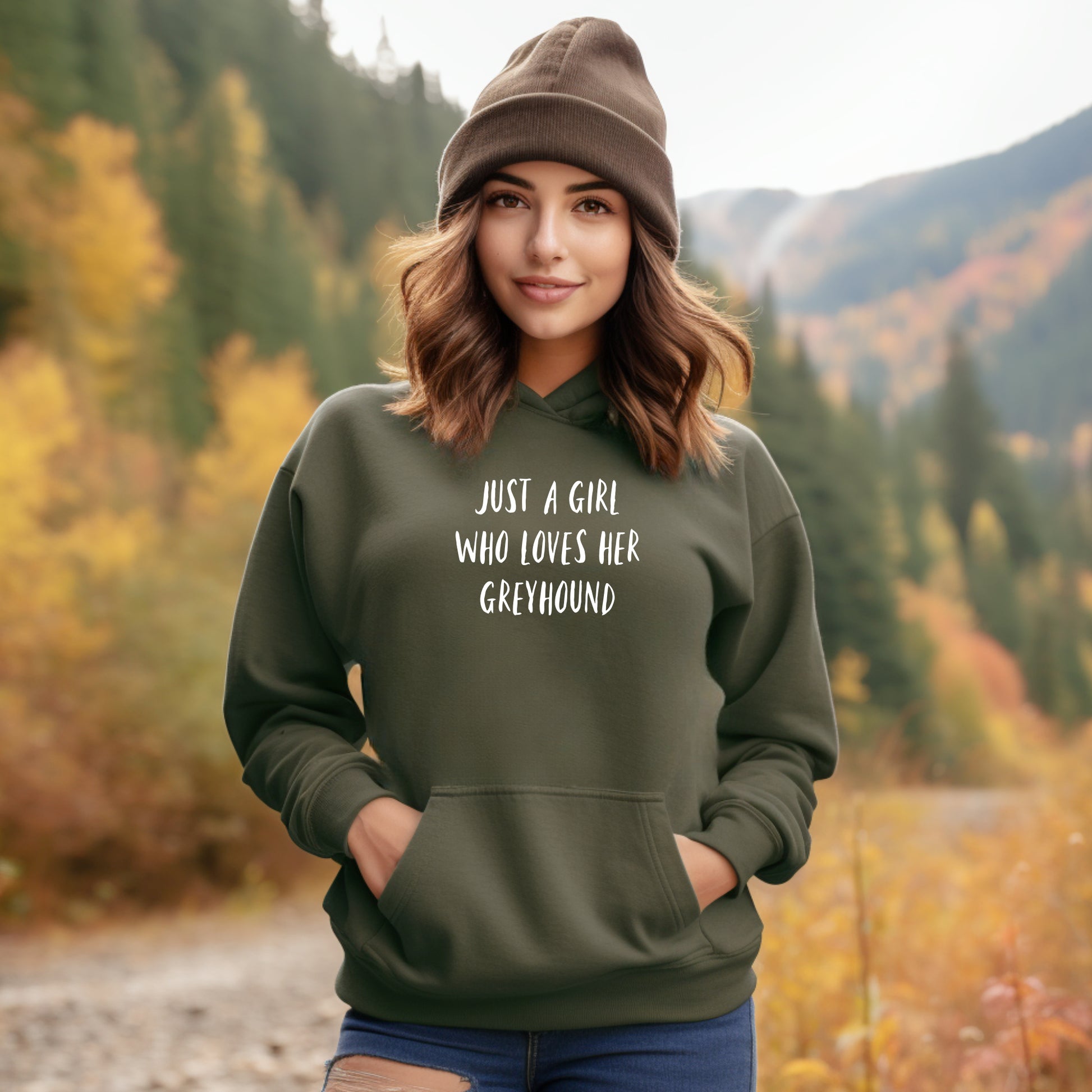 Personalised dog hoodie featuring the words 'Just a girl who loves her .........'
