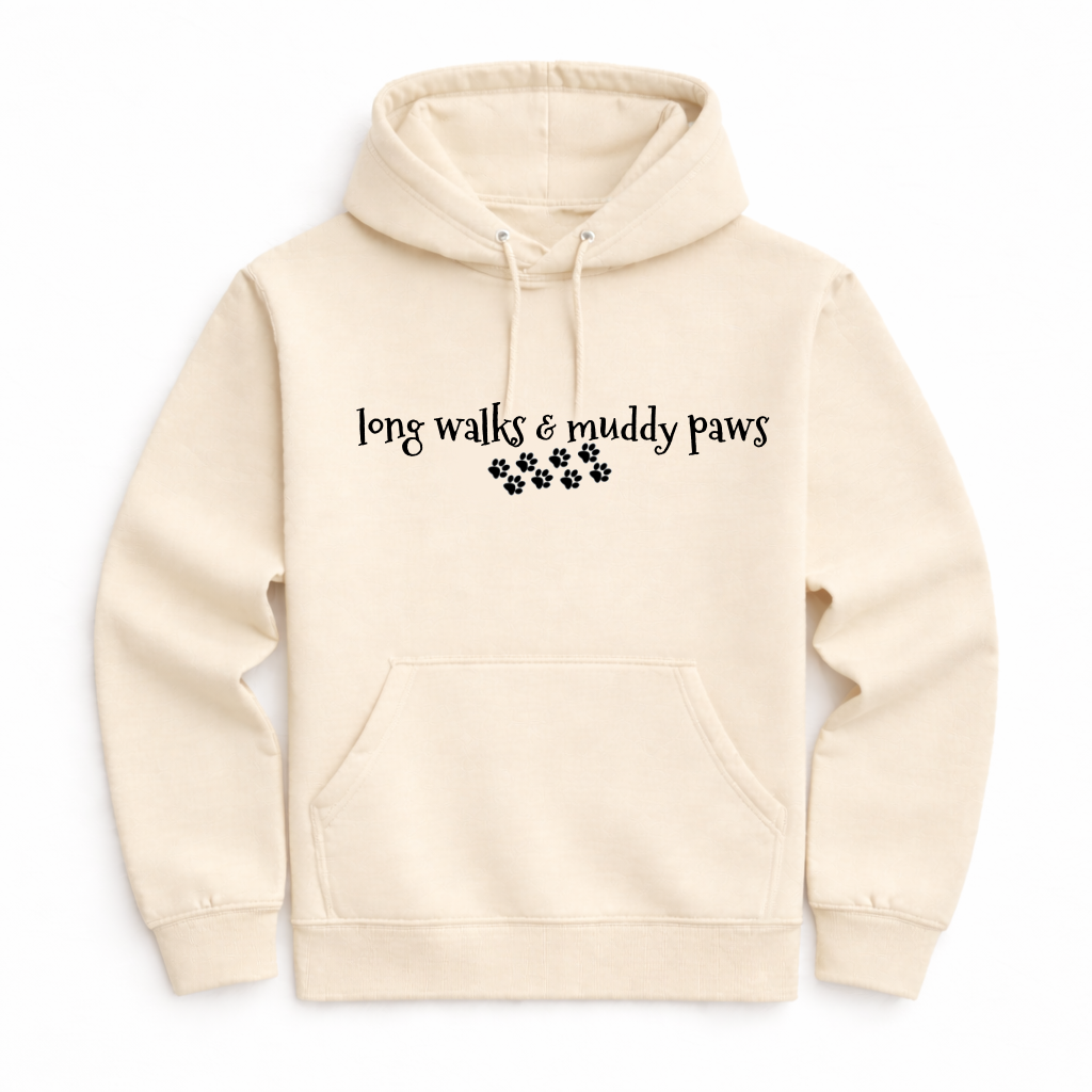 Purchased the'long walks and muddy paws' hoodie in sand colour,size medium(I'm a size 12/14 5ft 6in) perfect fit,sleeve length nice and long . Experience, first class from start to finish.