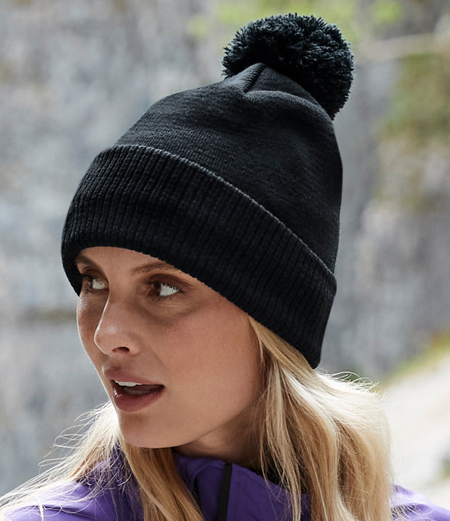 Perfect for any outdoor adventure, this beanie has a durable water repellent finish offering protection from the elements. It has a warm microfleece lining and the ribbed cuff can be folded down to achieve a slouchy fit. A self-coloured pom pom completes the look.