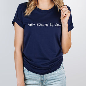 Made from soft, breathable organic cotton, this eco-friendly T-shirt is perfect for dog lovers. Featuring the "Easily Distracted by Dogs" slogan, it’s a best seller and a must-have for any dog owner.